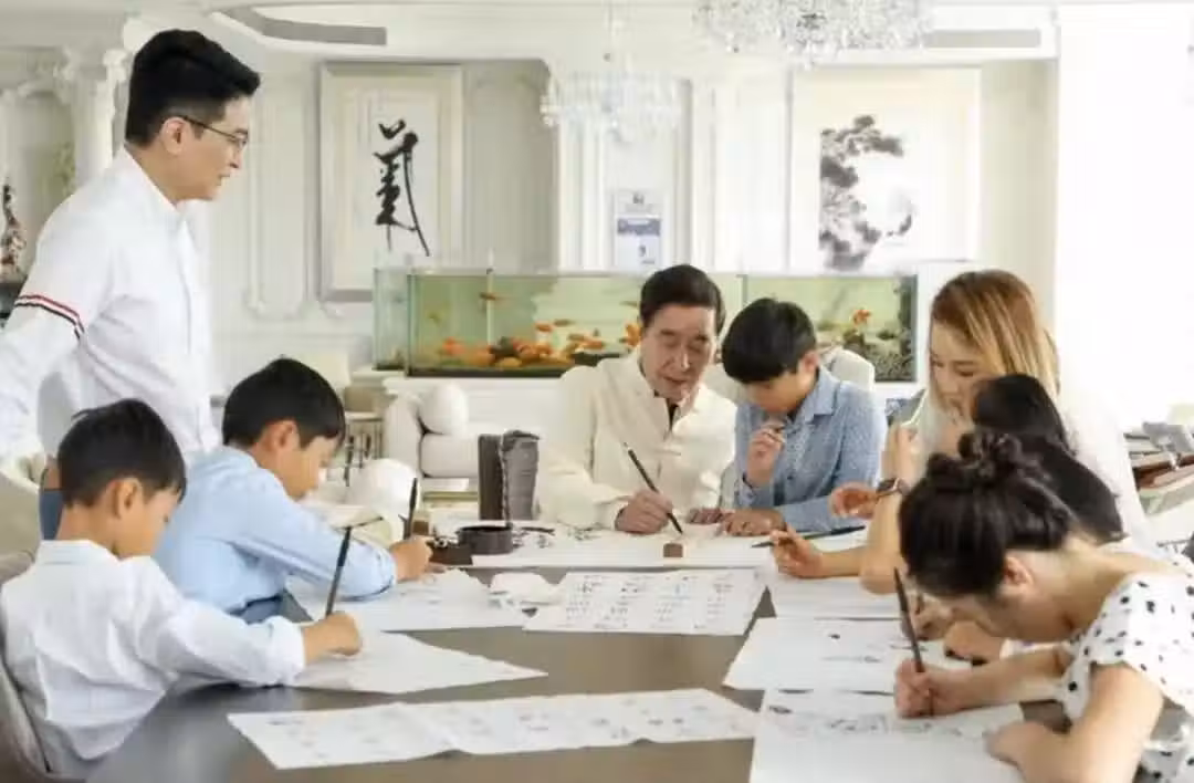 晚年,李兆基就跟兒子兒媳婦孫子孫女生活在這裡。李家誠曾經曬出父親陪著孫子孫女練習書法的照片,祖孫三代其樂融融。現在更多的家庭照曝光,能看出李兆基晚年很幸福。