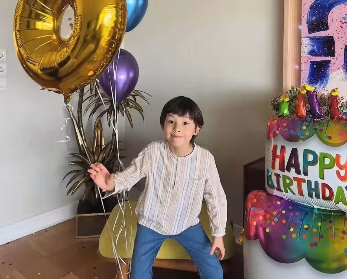 只見小兒子開心的拿著生日氣球,在蛋糕面前拍照、許願。值得一提的是,周汶錡的外籍老公Julien這次也罕見出鏡,過去一年周汶錡都沒怎麼在社交媒體上分享他的照片,在外界看來夫妻倆的感情,也並沒有特別甜蜜。