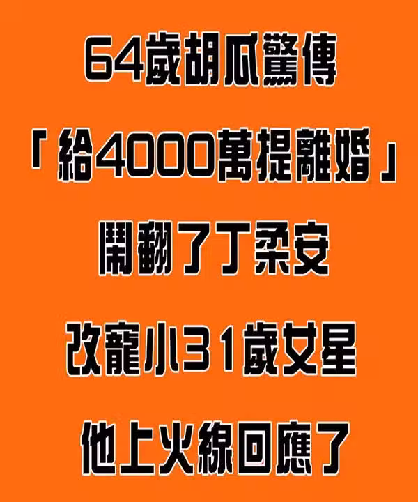 64歲胡瓜「給4000萬提離婚」鬧翻丁柔安 「改寵小31歲女星」他上火線回應了