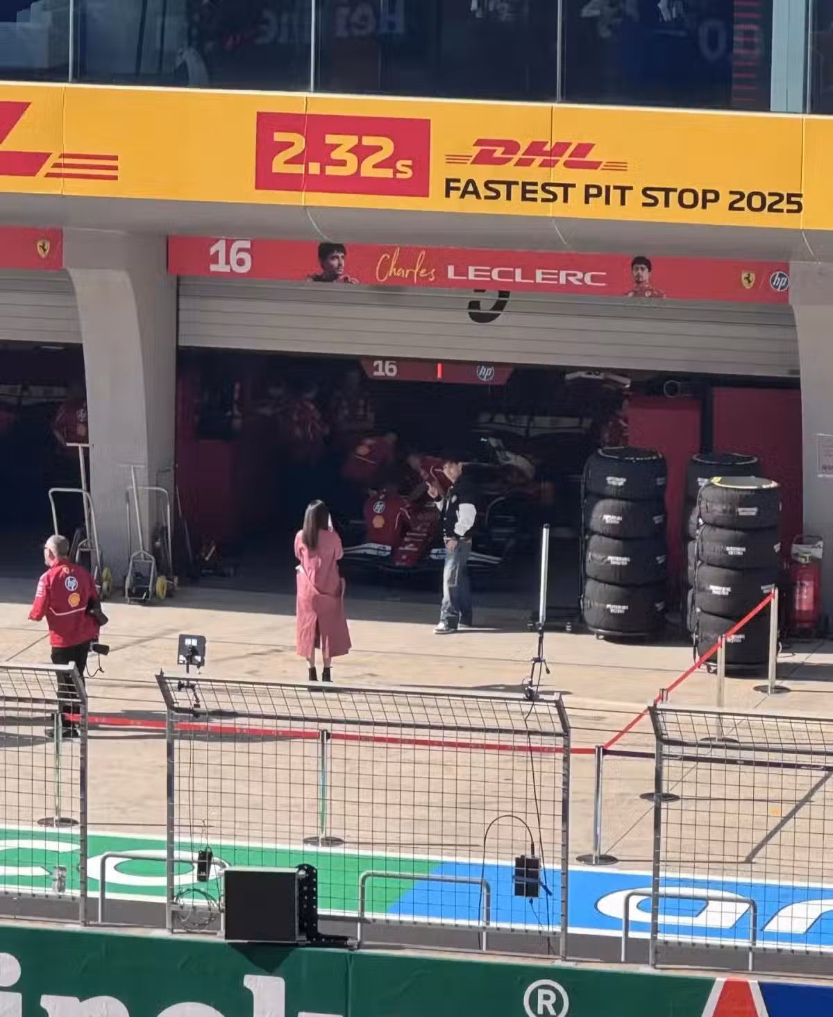 50歲林志穎在上海,去看賽車,老婆陳若儀露雙腿,在現場大出風頭