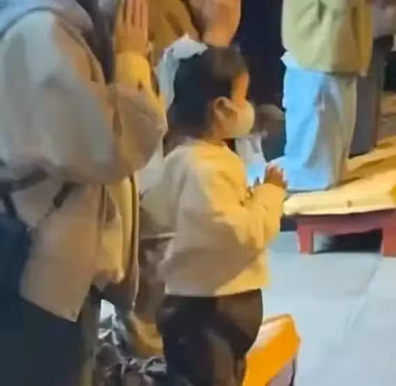 林峯一家三口現身普陀山,疑似為求二胎生子,張馨月背過氣款奢包