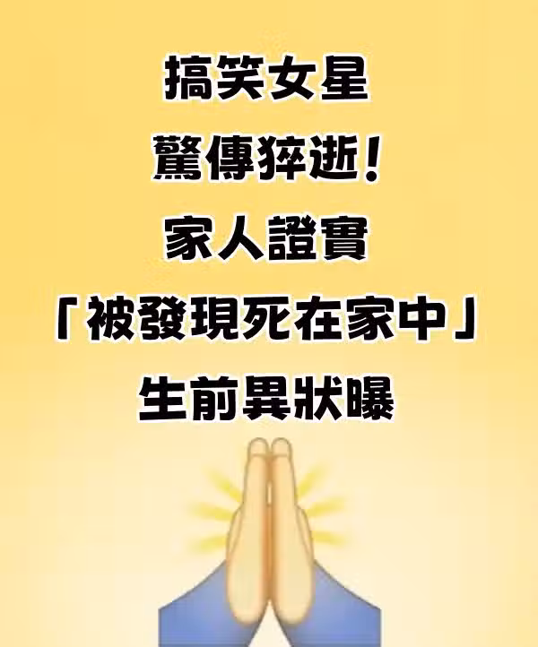 搞笑女星驚傳猝逝!家人證實「被發現死在家中」生前異狀曝