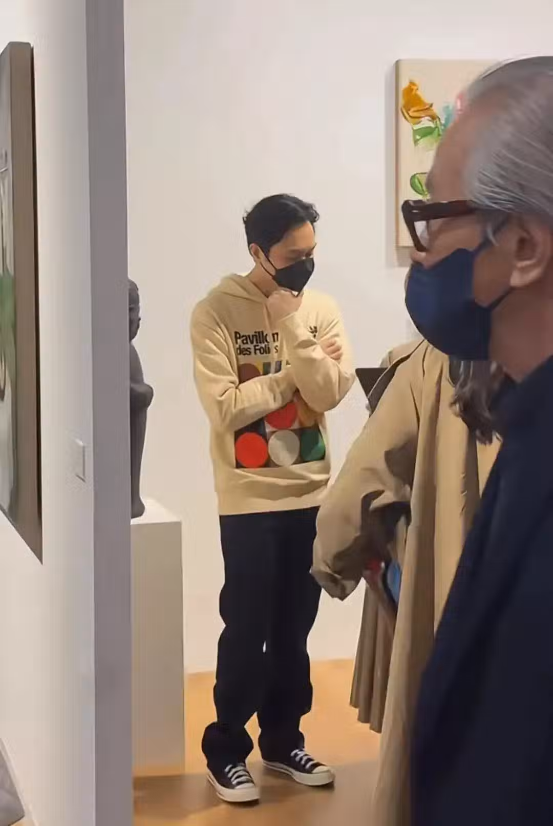 53歲張智霖在香港,和袁詠儀看畫展,素顏皮膚好,又高又瘦不油膩