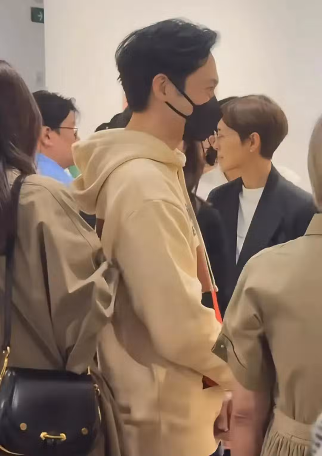 53歲張智霖在香港,和袁詠儀看畫展,素顏皮膚好,又高又瘦不油膩