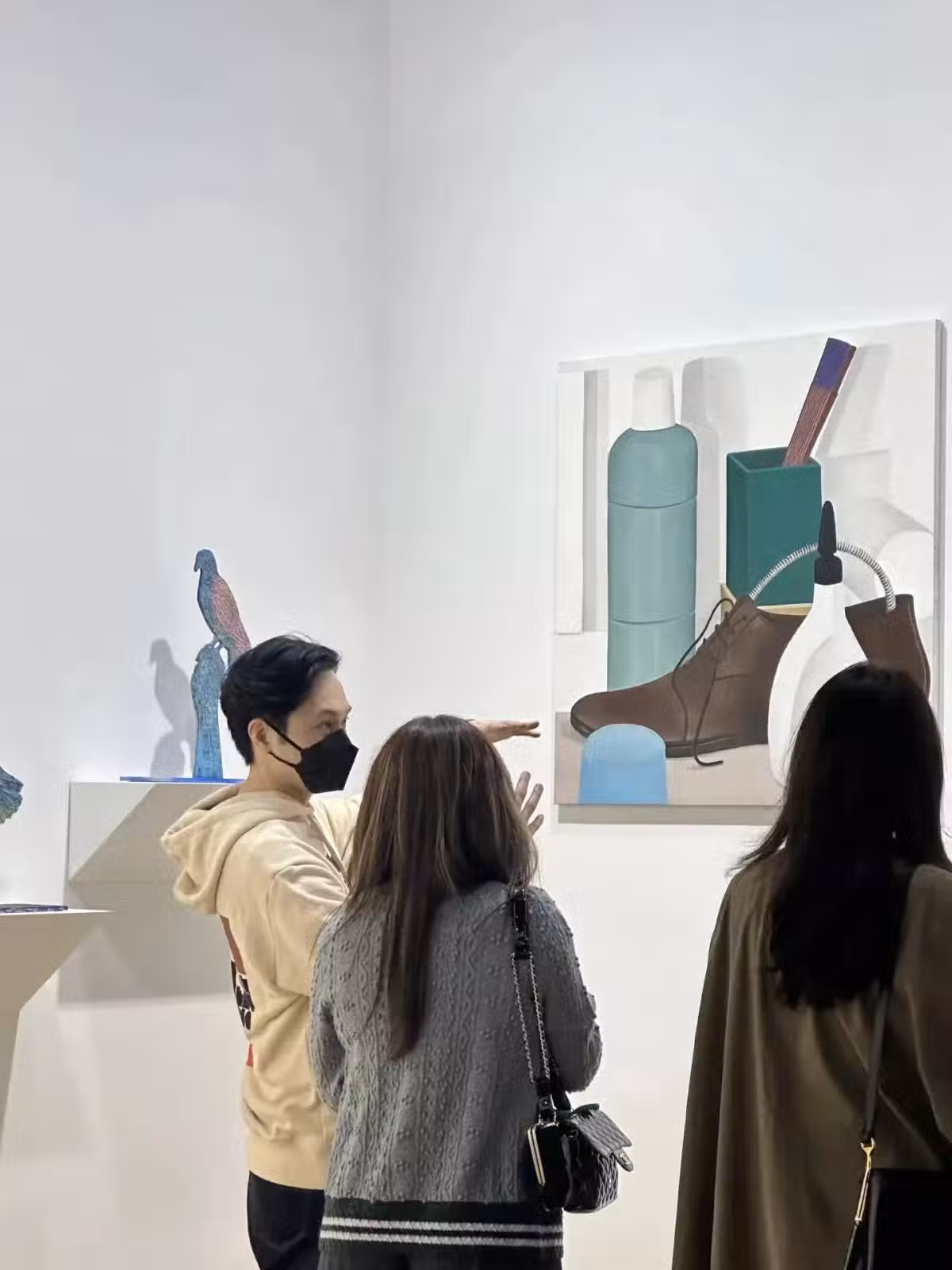 53歲張智霖在香港,和袁詠儀看畫展,素顏皮膚好,又高又瘦不油膩