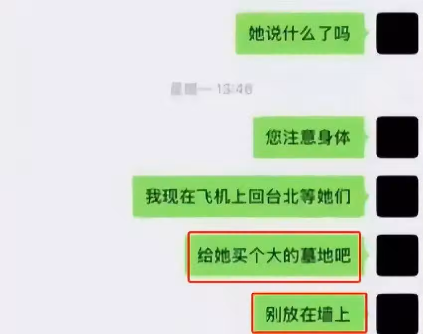 他得知對方突然離世,第一個問題是問孩子好不好,然後又表示,自己願意出錢買墓地,而且要大一點,不想讓她放在牆上。