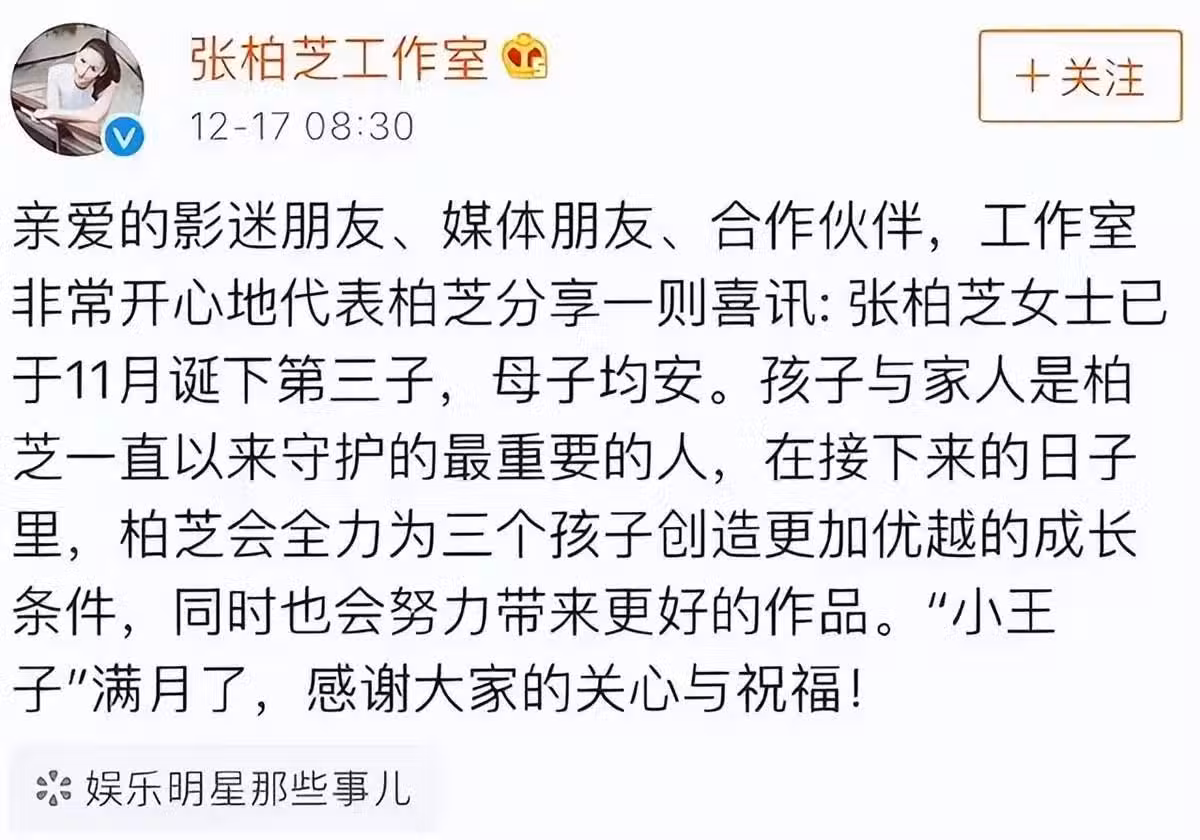 在這之後,張柏芝又迎來新一波熱度,但她並未對外公開生父身份,這也引來不少網友猜測。
