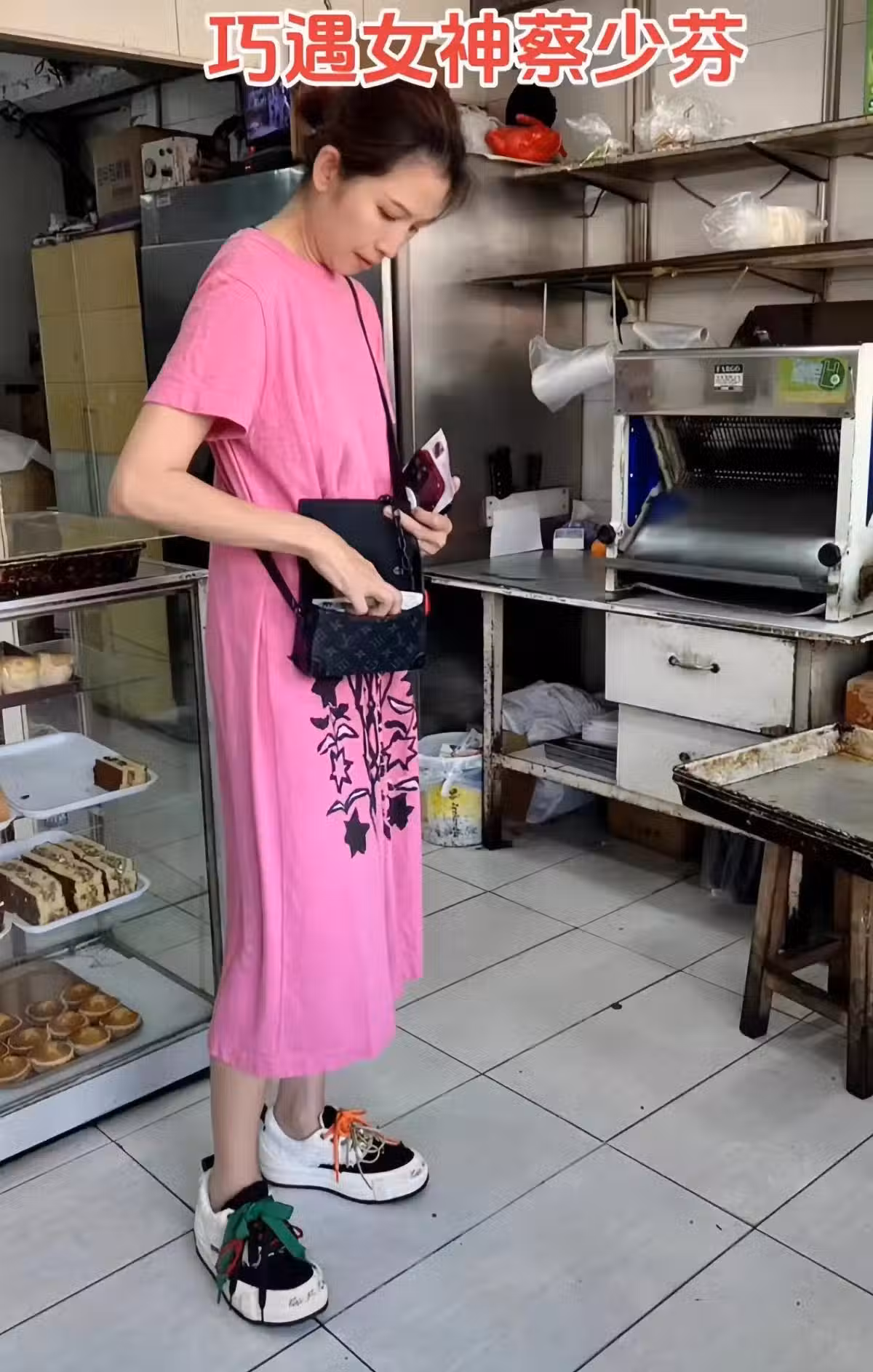 51歲蔡少芬在香港,去了一家麵包店,打扮一言難盡,好像家庭主婦
