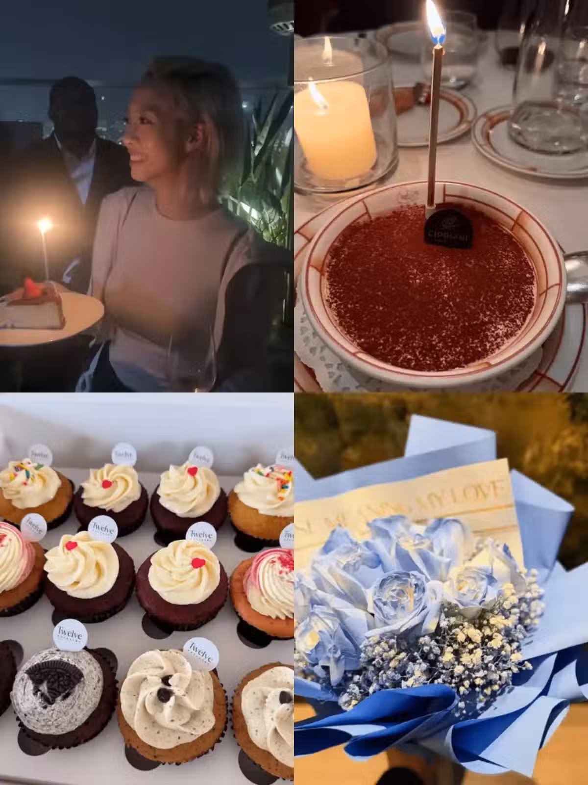 胡美貽曬出多張慶生照並留言:「Thank you all.」照片中可以看到她留著一頭紮起小噴泉的銀白色前衛短髮,並身穿黑色掛脖比基尼泳裝,雙膝跪坐在豪華遊艇的甲板上並手捧大束梅紅色芍藥花束,臉上流露出寫意幸福的笑容。