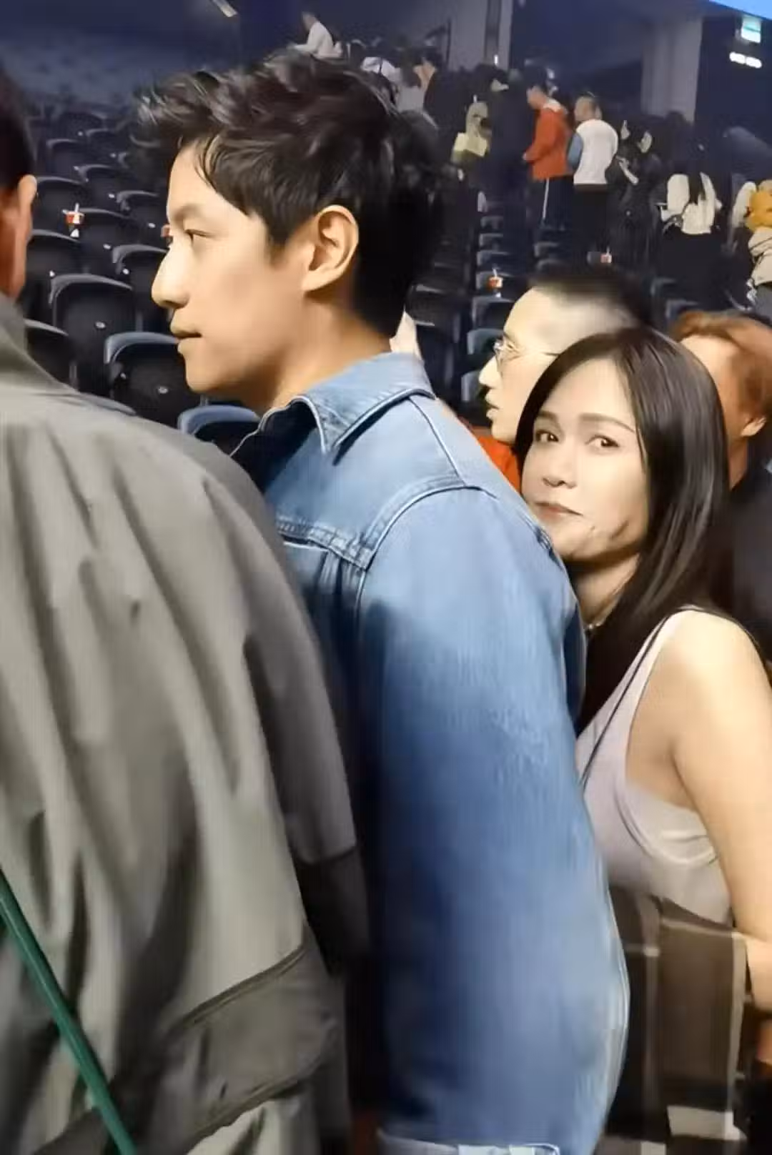 46歲陳喬恩在澳門,和老公看演唱會,穿了一件背心,身材豐腴好多
