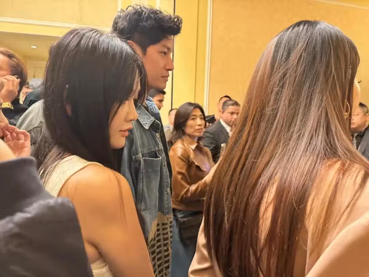 艾倫一直待在她身邊,穿了一件牛仔外套,又高又瘦,身材壯碩,在人群里非常顯眼!