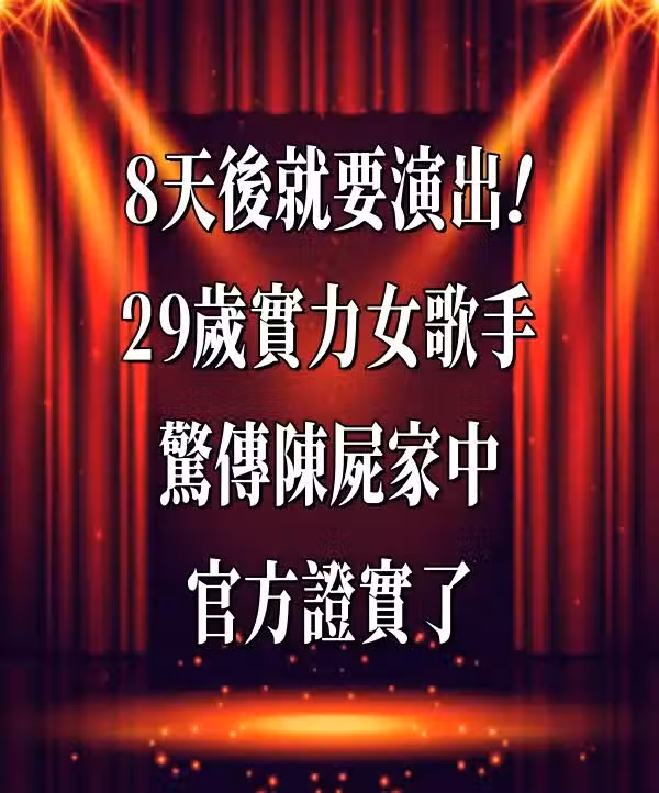 8天後就要演出!29歲實力女歌手驚傳陳屍家中 官方證實了