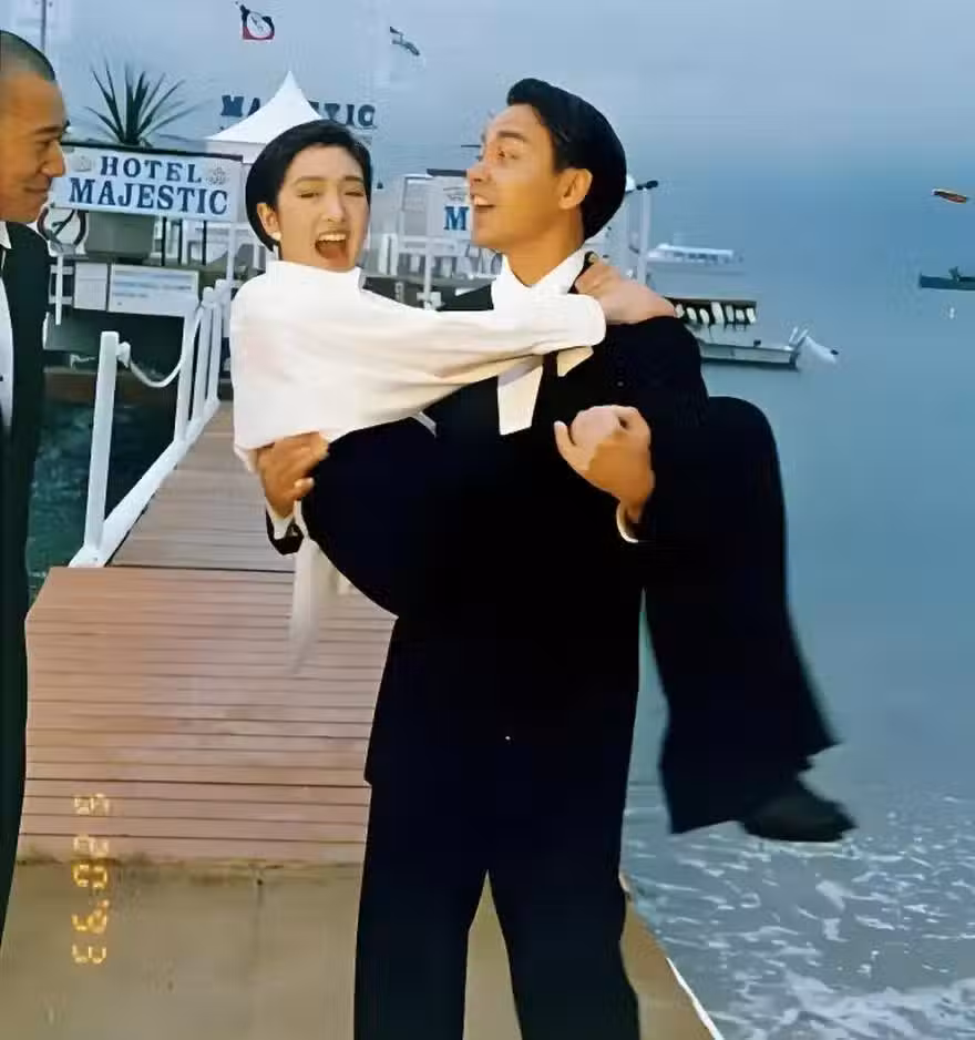 還有這張哥哥將鞏皇一把抱起,張豐毅在旁邊看著二人,張國榮一臉驕傲的看著張豐毅,這樣美好的畫面已經很難用語言去形容了。