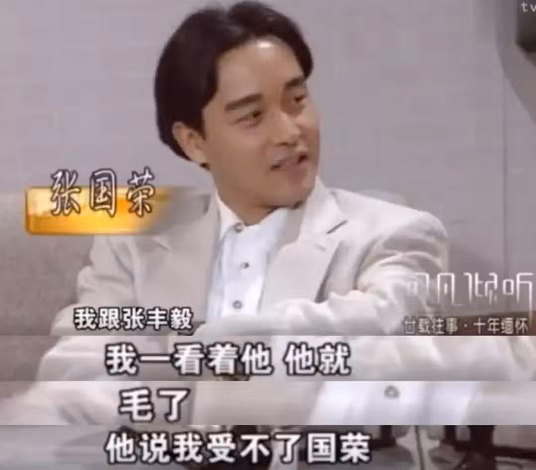 在當年接受曹可凡採訪時,張國榮還提起了張豐毅與鞏俐,說和張豐毅第一場戲,一看張豐毅,他就毛了,張豐毅直呼受不了張國榮的眼神。