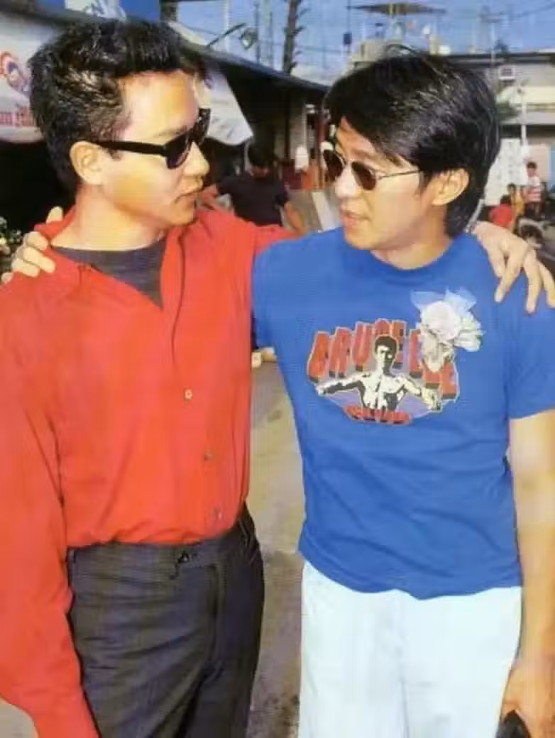 照片中星爺摟著哥哥,而哥哥則笑得像個孩子一樣,雖然合作過的作品並不多,但二人也算是惺惺相惜。