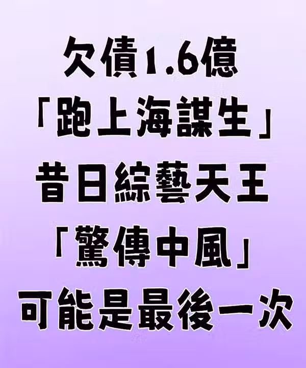欠債1.6億「跑上海謀生」綜藝天王「驚傳中風」:可能是最後一次