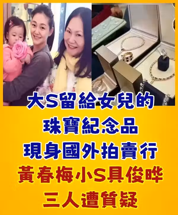 大S留給女兒的珠寶紀念品,現身國外拍賣行,黃春梅小S具俊曄三人遭質疑!