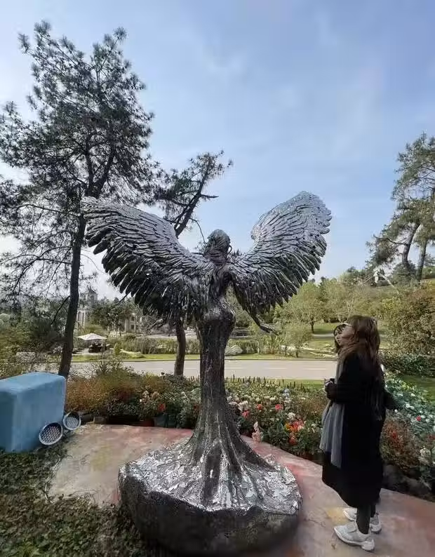 據悉,李玟墓地位於武漢石門峰紀念公園,周圍綠樹成蔭,一年四季都有鮮花盛開,環境相當優美。這一點,從李思林分享的現場照便能夠看出來。