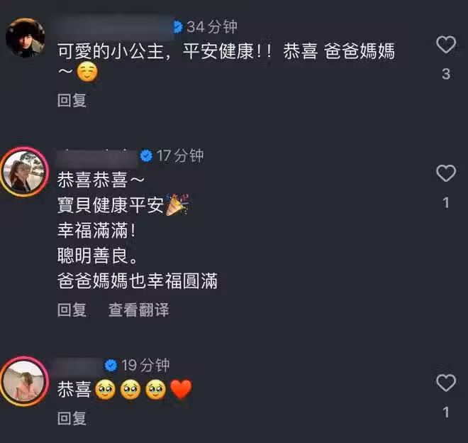 評論區自然也是一片祝福之聲,紛紛恭喜洪小玲和張天霖喜得愛女,祝福張小妹平安健康,洪小玲一家3口可以幸福圓滿。