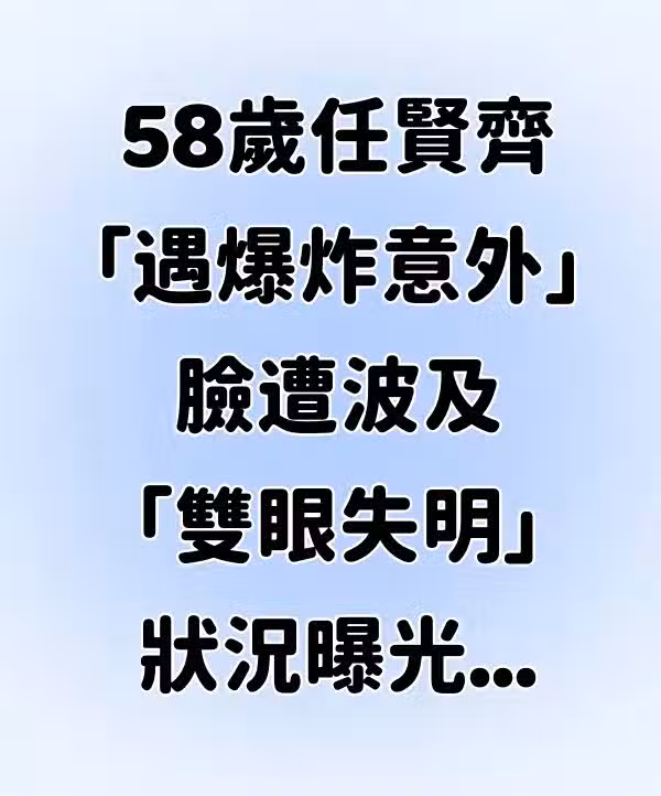 娛樂新聞/58歲任賢齊「遇爆炸意外」!臉遭波及「雙眼失明」狀況曝光...