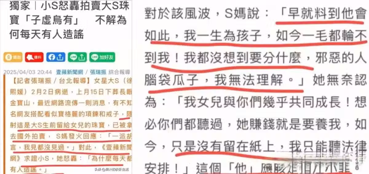 自打大S離世後,小S也和S媽發聲,一則小S說她姐姐希望她工作,一則S媽說女兒賺錢是為養她。當然了還有國外拍賣珠寶為不實消息,以及對於小S來說,大S的離世對她打擊很大。不過,大S離世,家人傷心也無可厚非,但是這也引發了網友們的又一輪猜想,這是不是小S在為自己復出工作做鋪墊呢?還有S媽對自己沒有分得遺產是否心有不甘?正當好奇寶寶們,想要知道汪小菲接下來的動向時候,汪小菲會不會發聲?