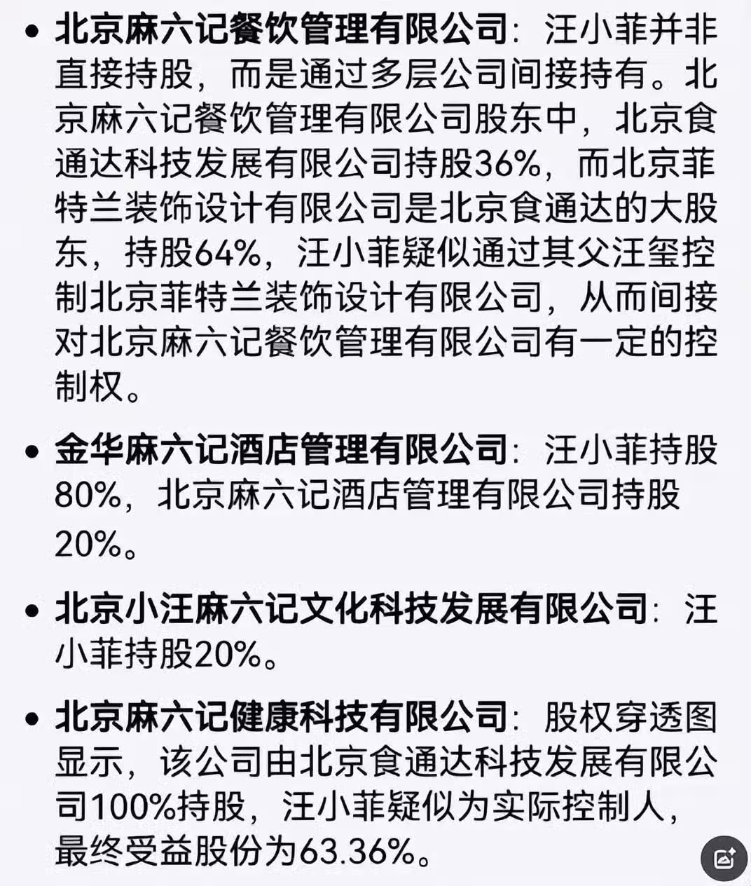 2:汪小菲和母親張蘭共同經營麻六記,是麻六記的重要股東,同時汪小菲又是北京合尊置業及食通達兩公司董事長。