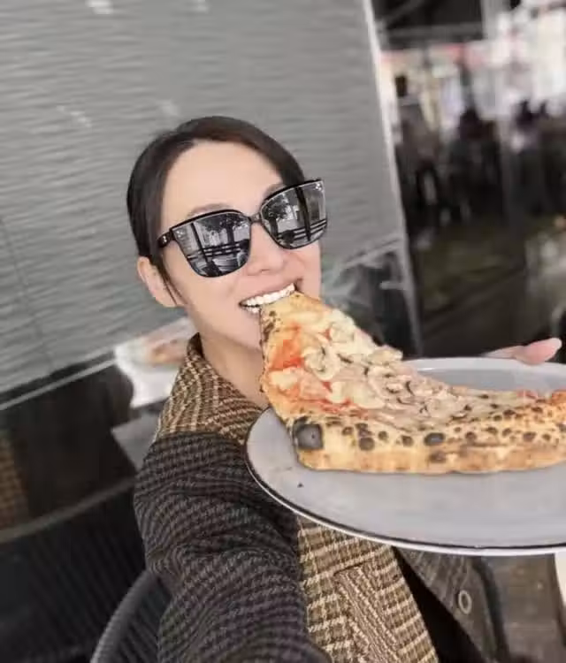 陳煒當天打扮的很休閒,穿著格子外套,扎著馬尾,戴著黑色的墨鏡,看起來相當利落,但又夾雜著一種神秘感,享用披薩的時候還專門做出可愛的表情,粉絲們看後也是紛紛第一時間為其點贊。