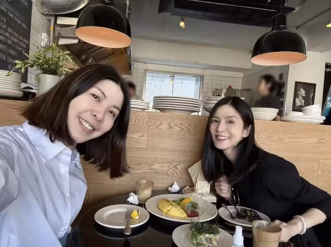 51歲楊采妮和老公在韓國,跟許茹芸聚餐,皮膚好白,身上沒有老態