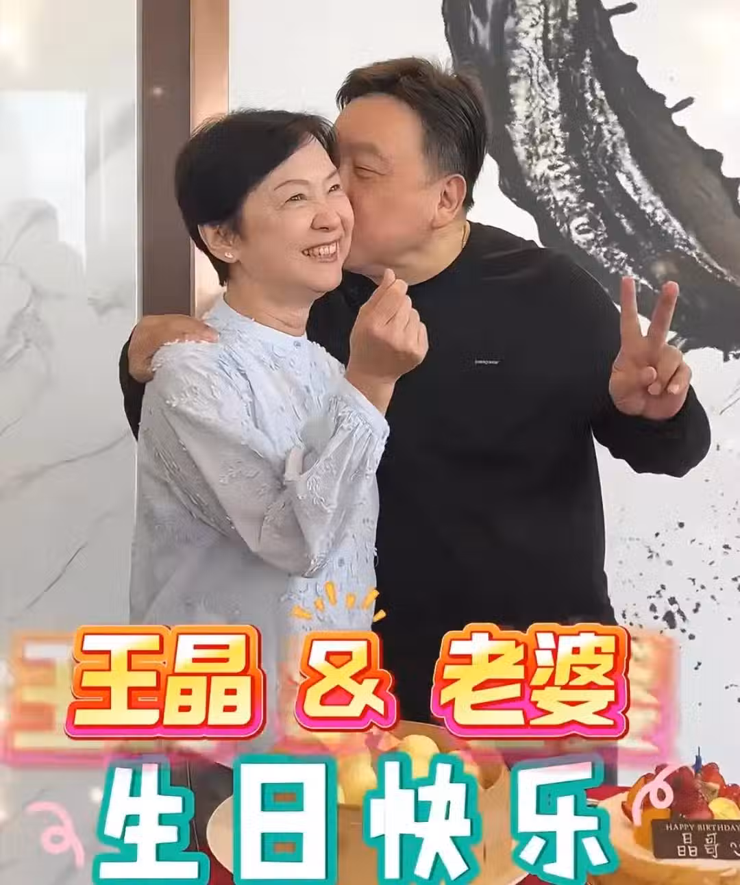 75歲陳百祥在香港,為老婆慶祝生日,大方秀恩愛,親吻黃杏秀臉頰