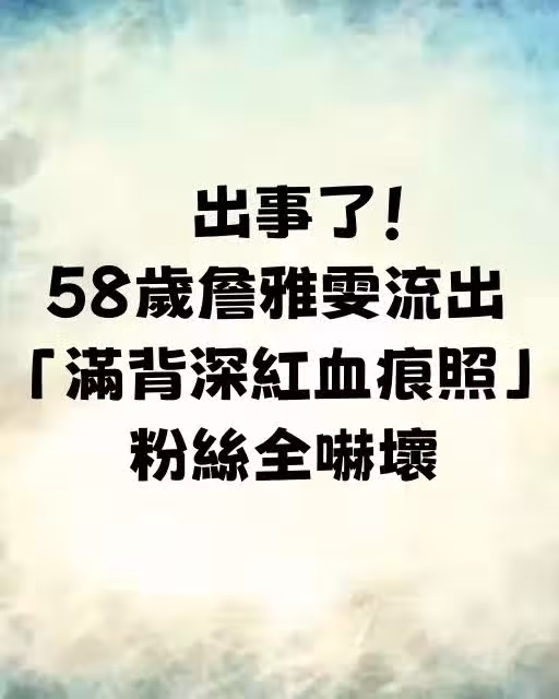 出事了! 58歲詹雅雯流出「滿背深紅血痕照」粉絲全嚇壞