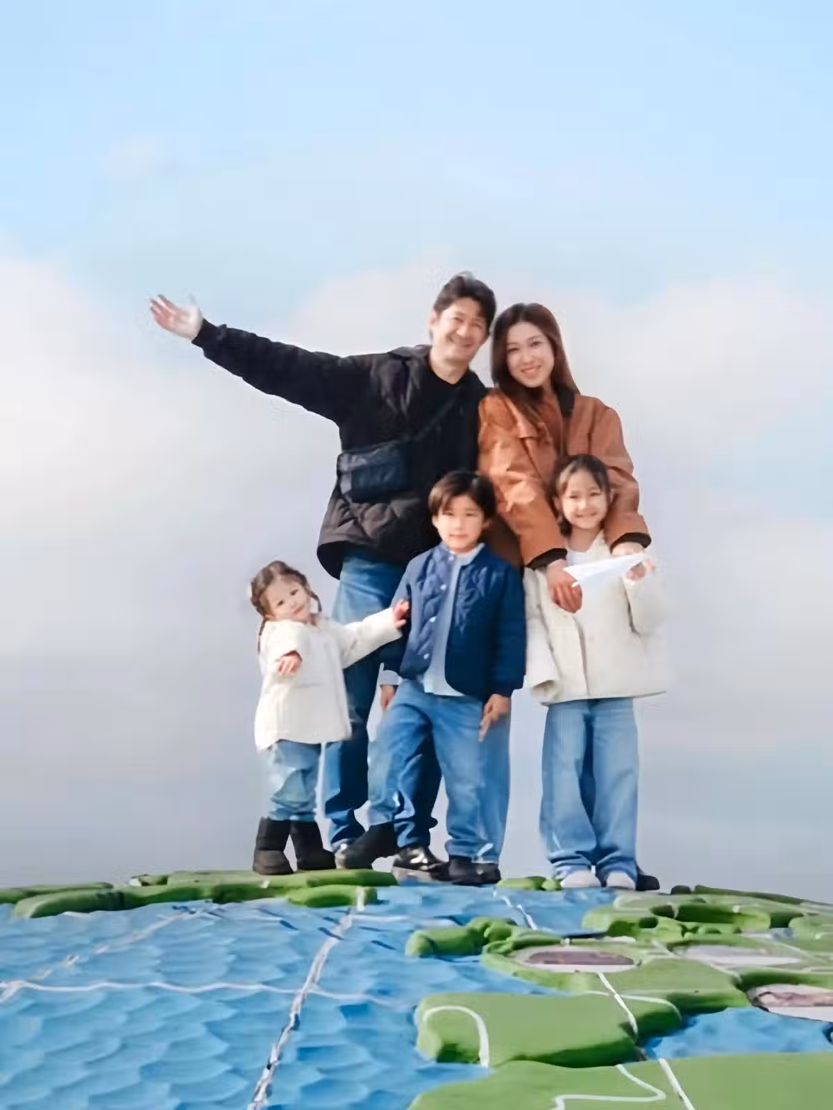 4月14日,鍾嘉欣在社交平台曬出和老公及子女的旅行照片,一家五口出遊畫面溫馨有愛,三個小朋友都好可愛。