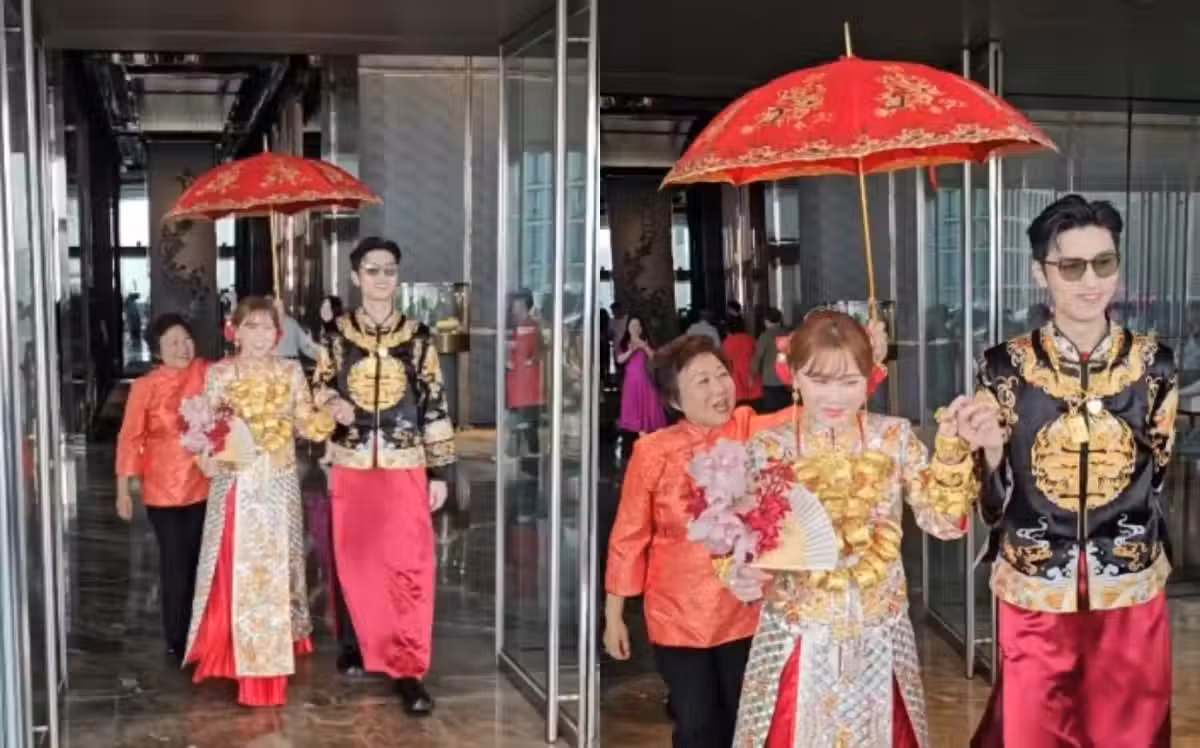 香港女歌手辦中式婚禮!上半身掛滿巨型金鐲,豪氣沖天如公主出嫁