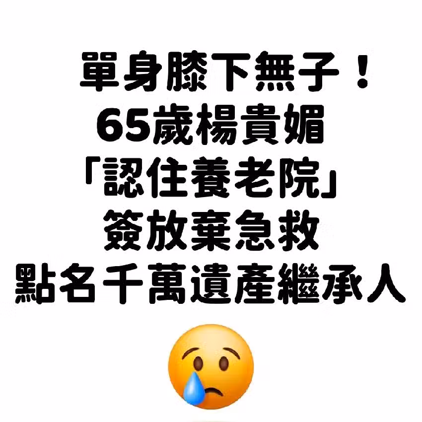 單身膝下無子!65歲楊貴媚「認住養老院」簽放棄急救,點名千萬遺產繼承人…