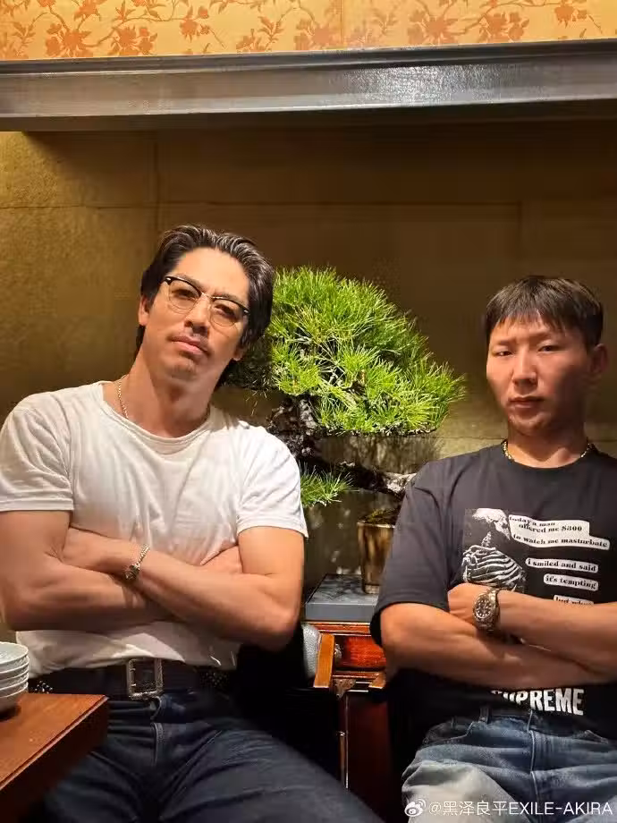 下圖是黑澤良平和阿如那的合影,不得不說,兩位都是酷man啊,哈哈哈,這面無表情的模樣真是一個比一個有型。