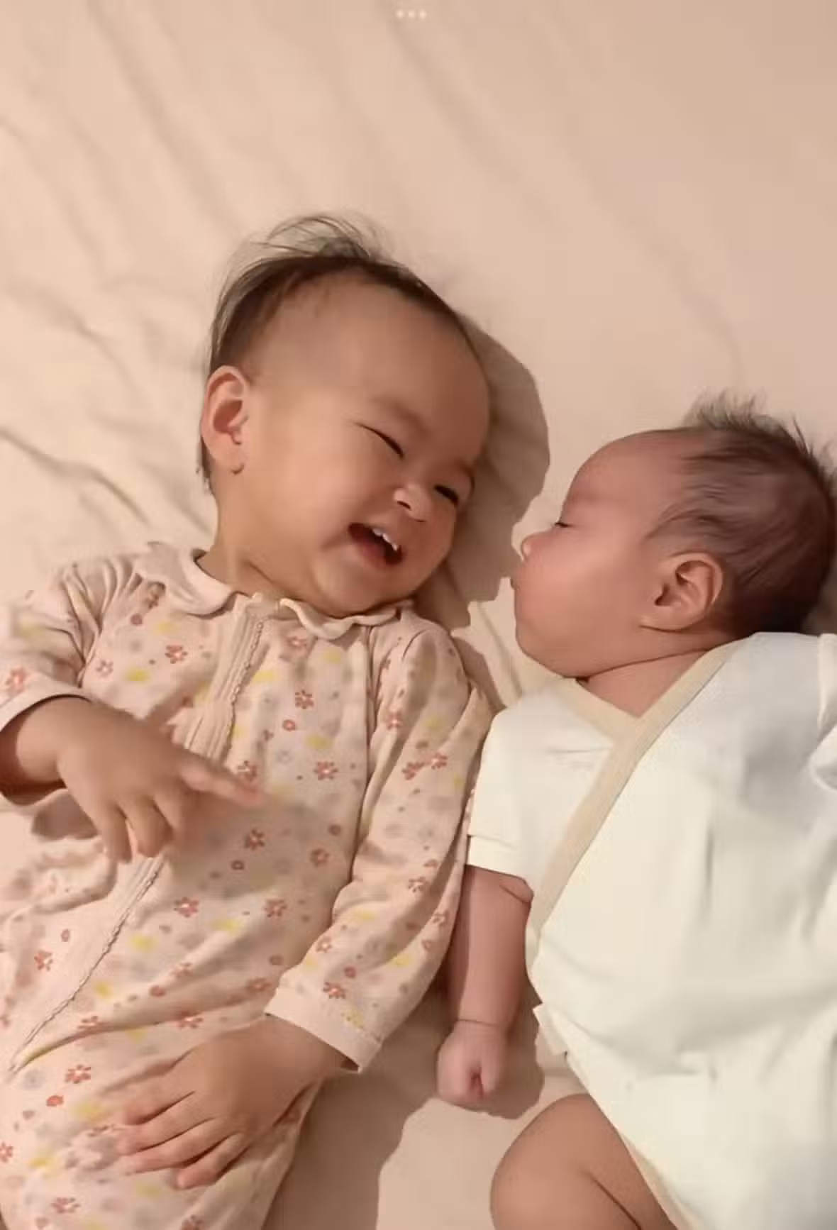她看著弟弟不停的笑,還時不時的去用手撫摸對方,看起來很有愛,而弟弟也是不停的望著身邊的姐姐,雖然他不會說話,但是卻很想與姐姐互動。