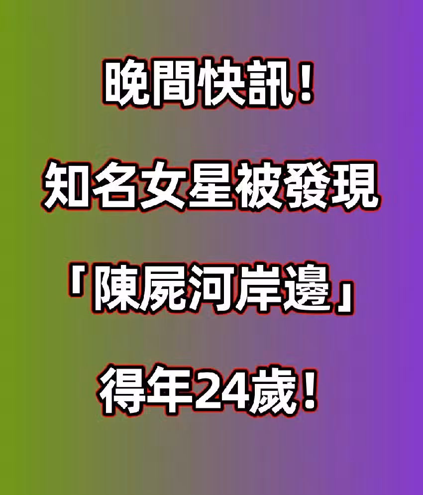 晚間快訊/知名女星「被發現陳屍河岸邊」得年24歲!!