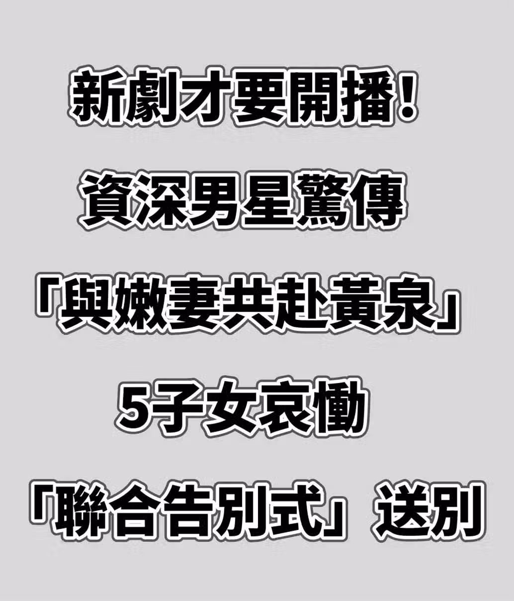 新劇才要開播!資深男星驚傳「與嫩妻共赴黃泉」...5子女哀慟「聯合告別式」送別
