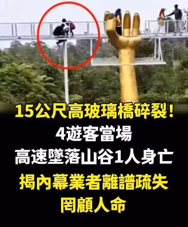 超驚悚!15米高玻璃橋碎裂!4遊客「當場高速墜落山谷」1人身亡 揭內幕「業者離譜疏失」罔顧人命!