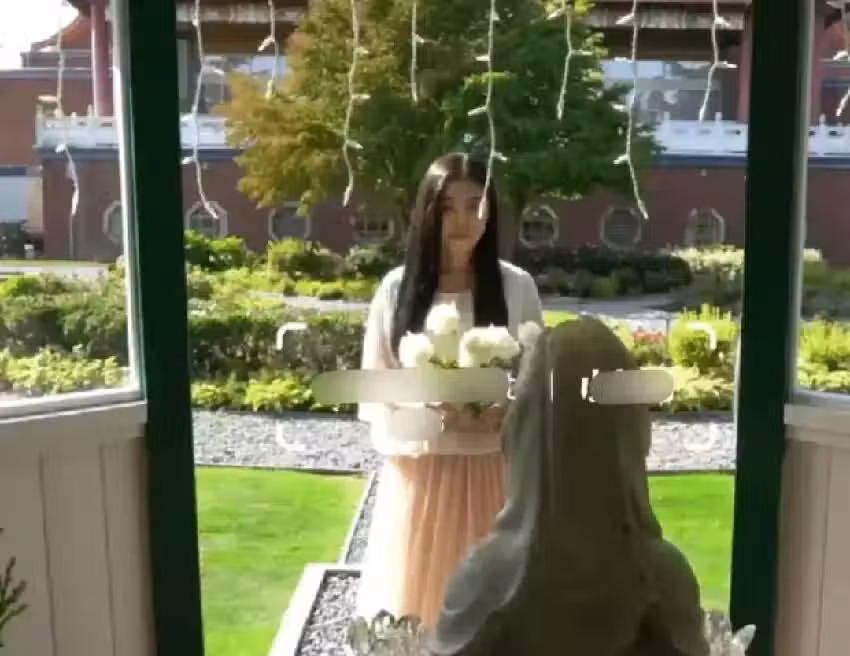 雖然只是穿著樸素的佛衣禮佛,仍然美得不可方物。