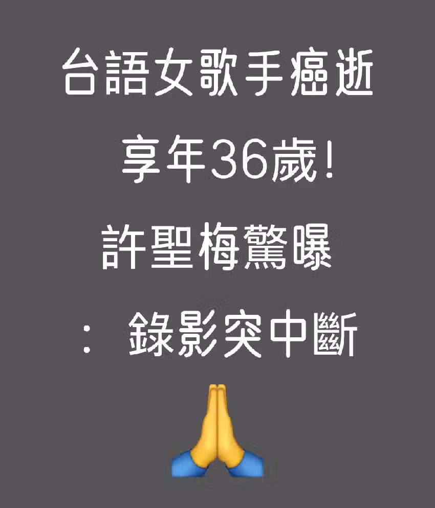 台語女歌手癌逝享年36歲! 許聖梅驚曝:錄影突中斷
