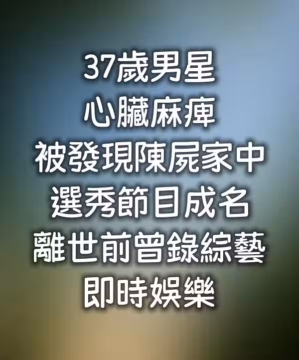 37歲男星心臟麻痹,被發現陳屍家中,選秀節目成名,離世前曾錄綜藝 即時娛樂