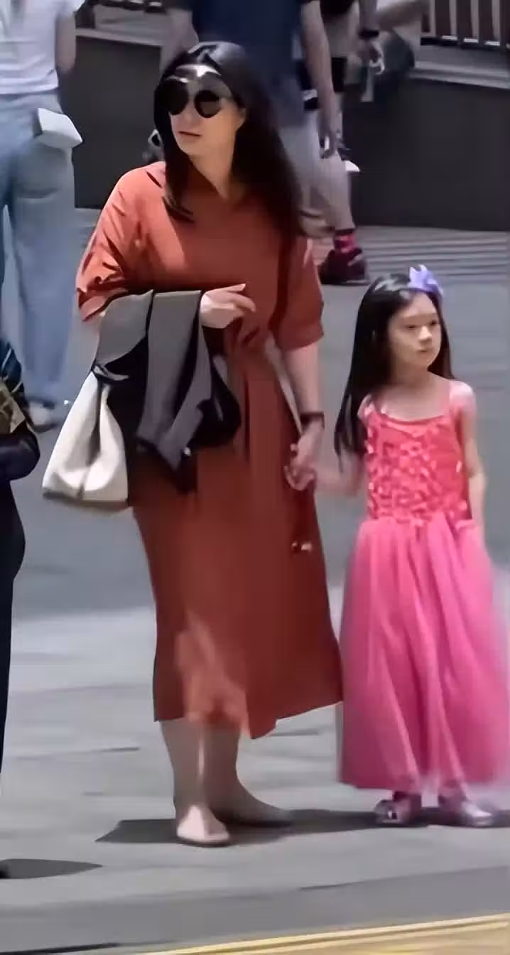 郭晶晶一家五口步行逛街,小女兒穿著鮮艷長發如瀑,顏值超越媽媽