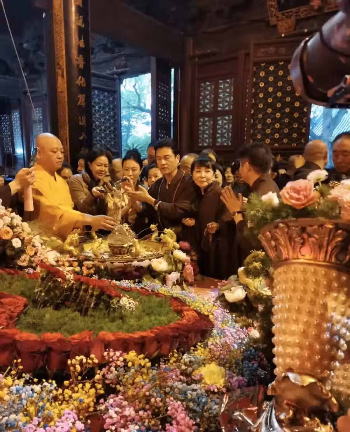 5月5日,恰逢浴佛節,呂良偉和楊小娟又一次前往普陀山祈福,他們這一次還穿了居士服飾,參加祈福法會,非常的虔誠!