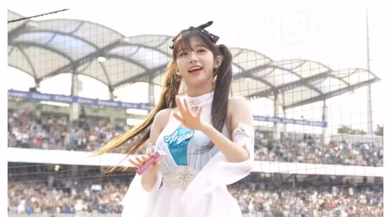 ▲李珠珢眼神專注盯緊球場動向,沒想到反應太快,見到敵對出局後立刻站起,見到旁邊隊友還沒反應後又尷尬坐下。(圖/走一日球迷 台灣プロ野球チア YouTube)