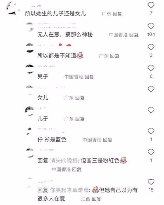 此外也有不少網民,對於麥明詩的寶寶性別進行猜測,他們有人猜男寶、有人說女寶,也有個別的網民,覺得麥明詩一直未公布寶寶性別太過神秘,真的沒有必要。
