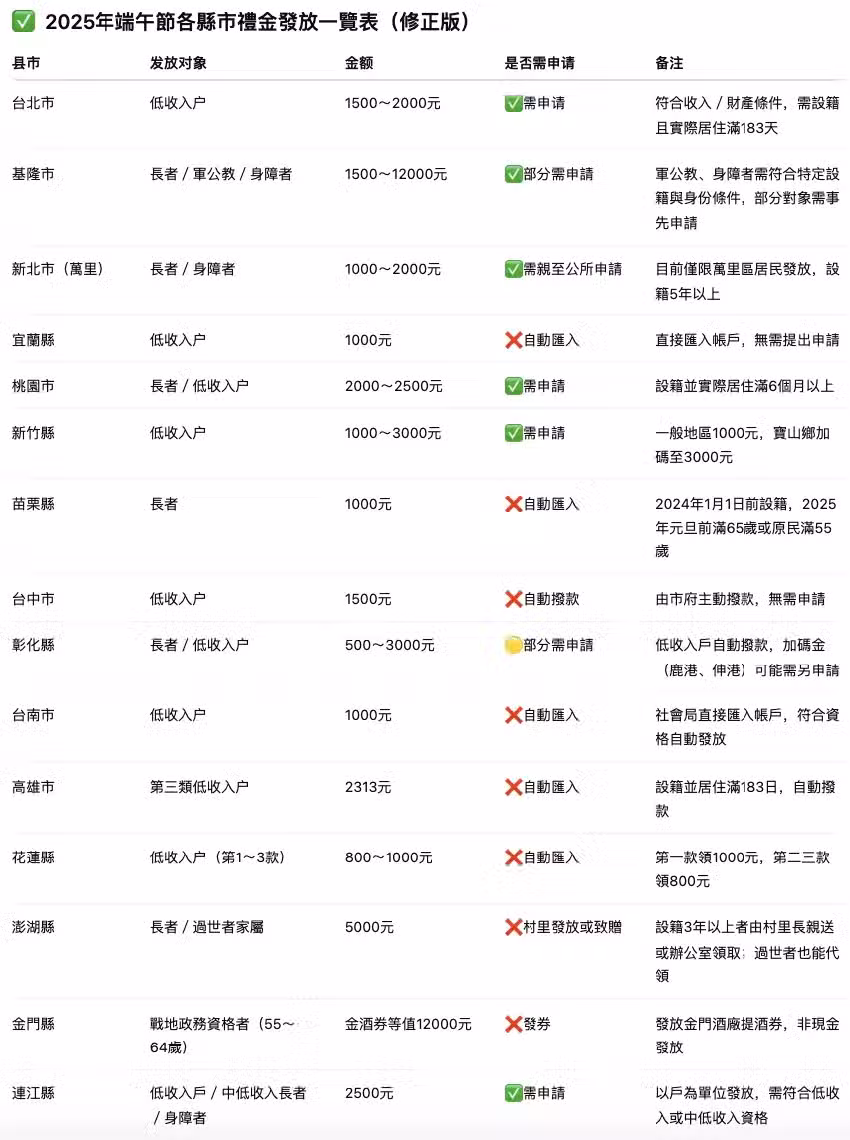對象:2024年1月1日前設籍,2025年元旦前滿65歲或原住民滿55歲