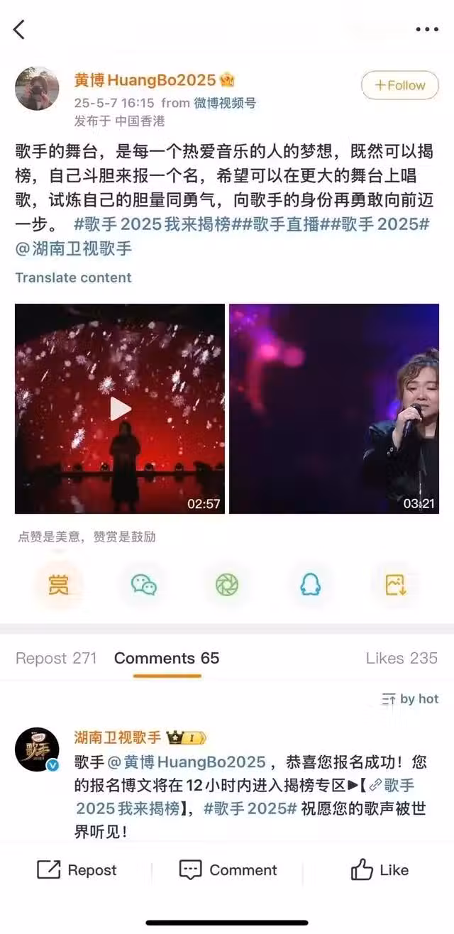 TVB選秀冠軍黃博將再轉戰內地音樂比賽,曾參加《快樂女聲》被淘汰