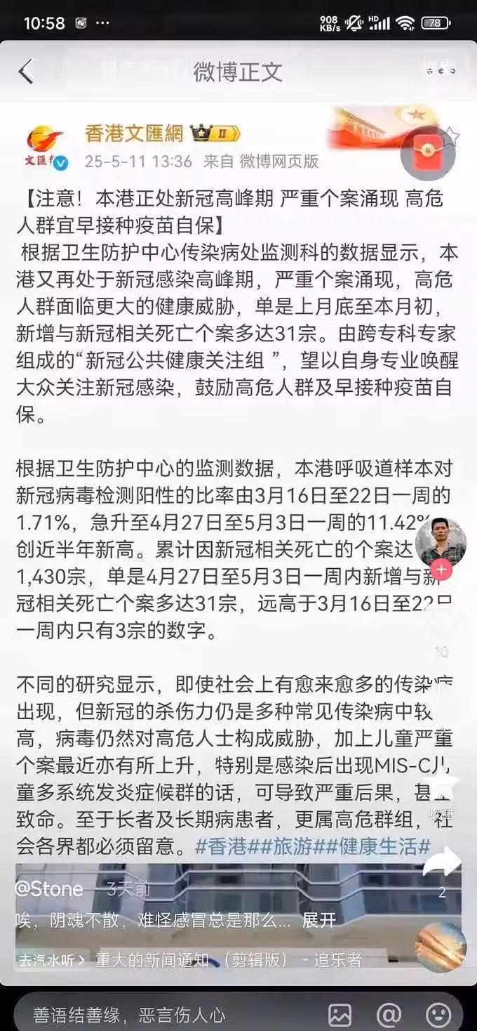 一周內死亡31人!香港出現新冠最新病毒變異株,陳奕迅已經確診