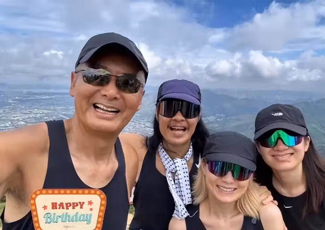 蔡一智同樣帶著太太和女兒,一家三口跟發哥跑步慶祝生日,並留言祝福:「身體健康、長跑長有、跑過一百歲、天天順心」。
