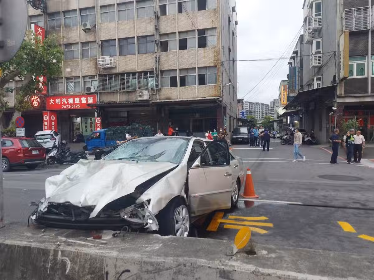 余姓老翁的轎車最終撞上分隔島,這才停了下來。(圖/翻攝畫面)